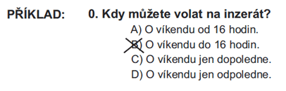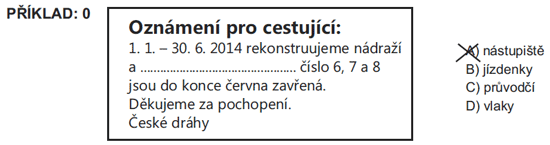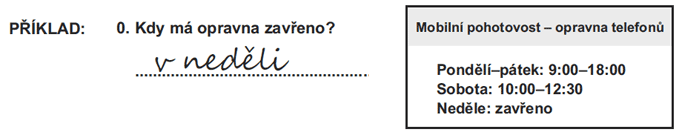 Čtěte text a vyberte 1 správné řešení pro úkoly 1–5. Číslo 0 je příklad.