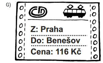 Správná odpověď je: G) obrázek jízdenky, protože muž si zapomněl koupit jízdenku.